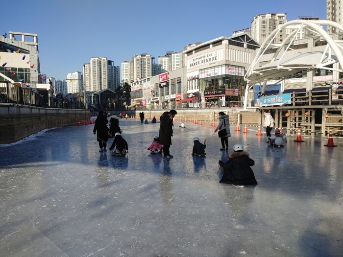 ‘금빛수로 아동 얼음썰매장’은 금빛수로 라베니체 수변무대 인근(장기동 2028번지)에서 오전 10시부터 오후 4시30분까지 13세 이하 아동을 대상으로 무료로 운영되고 아이 1명당 보호자 1명까지만 함께 입장할 수 있다.