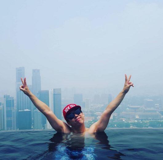 공개된 사진 속 그는 수영장 안에서 포즈를 취하고 있다.