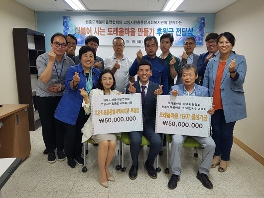 고양시 원흥종합사회복지관은 지난 19일 원흥도래울마을연합회와 함께 양측 관계자 20여 명이 모인 가운데 지역복지 증진을 위한 후원금 전달식을 가졌다.