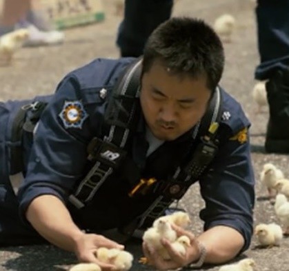마동석은 "인터넷에서 유명한 '병아리 사진'은 영화 '반창꼬' 촬영 중에 찍힌 것"이라며"당시 병아리를 3천 마리 정도 풀었는데 햇빛을 못 견뎌 타 죽는 경우가 있어서 '어떡하지?'하는 중에 찍힌 것"이라고 전했다.