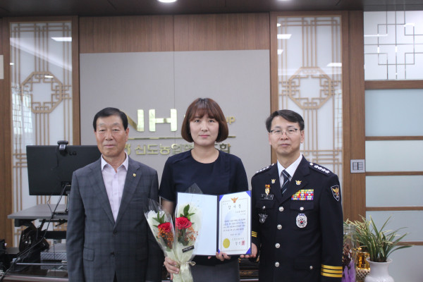 신도농협(세솔점) 이주현씨는 지난 5월31일 10:30경 영업장에 들어온 70대 어르신이 현금 1천6백만원을 인출해달라는 다급하고 초조한 언행을 보고 6백만원만 인출하여 피해자에게 전달하고 곧바로 “보이스 피싱이 의심된다”라는 내용으로 파출소에 신고 했다.