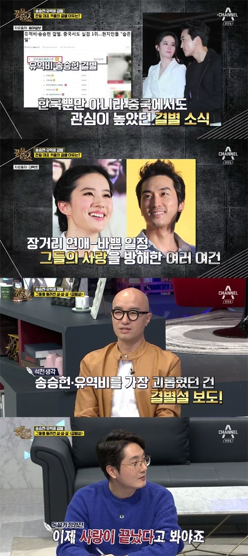 과거 방송된 종합편성채널 채널A '풍문으로 들었쇼'(이하 '풍문쇼')에서 연예부기자는 "두 사람의 결별설이 나자마자 한국과 중국에서 굉장히 대대적으로 보도가 됐다. 안타까워하는 사람이 그만큼 많았다는 반증인 거 같은데 이유가 무엇인지에 대해서도 굉장히 많은 추측들이 오고갔다"고 운을 뗐다.