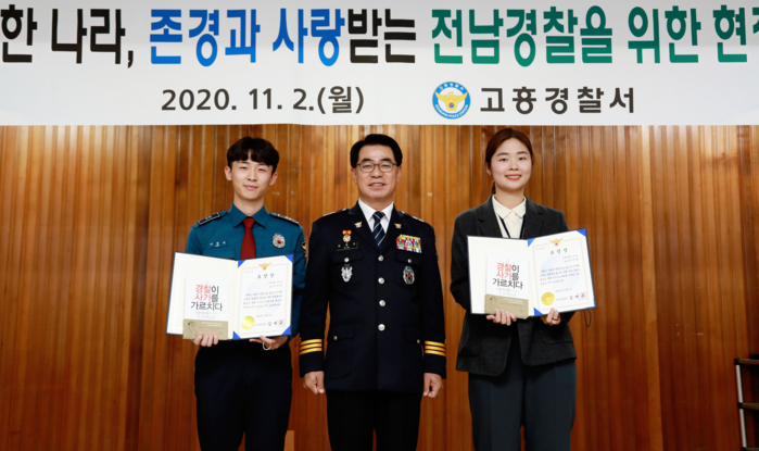 | ▲ 김재규 전남지방경찰청장은 지난 2일 고흥경찰서를 방문해 수사구조개혁 홍보 등 업무 유공 경찰관 2명에게 표창장을 수여했다.(출처=전남지방경찰청) |