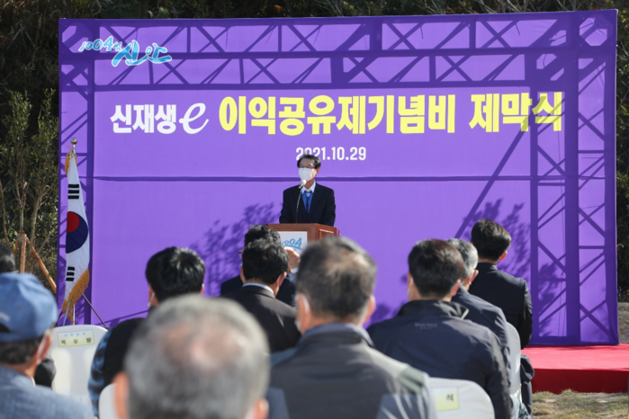 신안군(군수 박우량)이‘신안군 신재생에너지 개발이익 공유 등에 관한 조례’ 제정을 기념해 이익공유제 기념비를 설치하고 제막식을 개최했다.