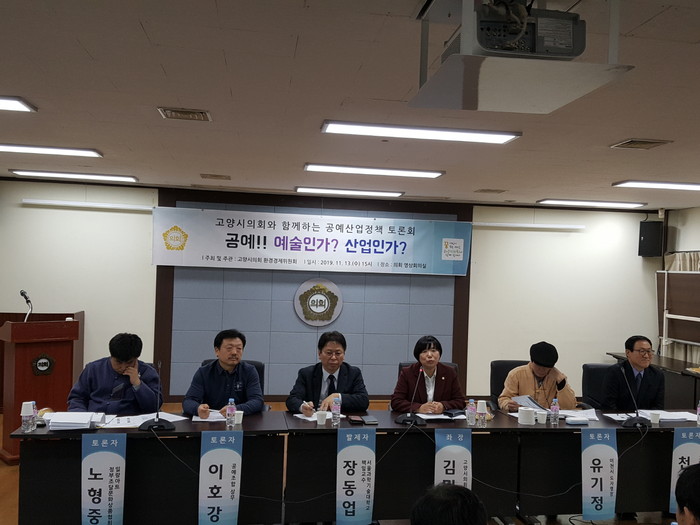 이날 토론회는 고양시 공예산업 진흥과 우수 공예품 육성을 위해 마련됐으며, 고양시의회 환경경제위원회 소속 의원들을 비롯하여 학계, 관계부서, 공예관련 단체, 시민 등 20여 명이 참석했다.