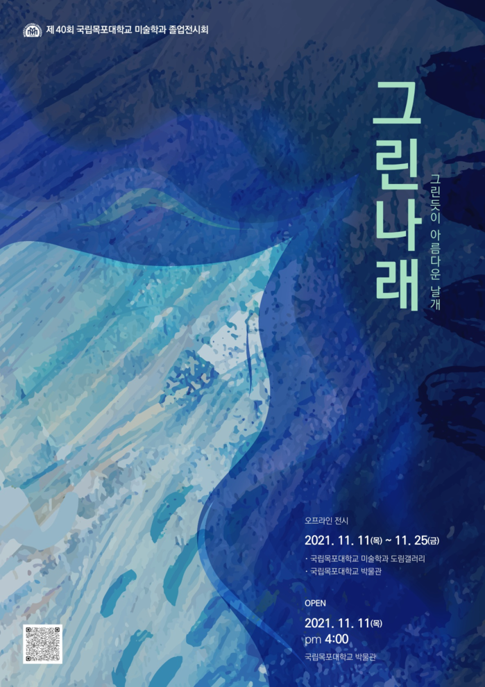 국립목포대학교(총장 박민서) 미술학과는 11월 11일(목)부터 11월 25일(목)까지 목포대학교 박물관과 도림 갤러리에서 학생들의 제40회 미술학과 졸업 전시 ‘그린나래’를 개최한다고 밝혔다.