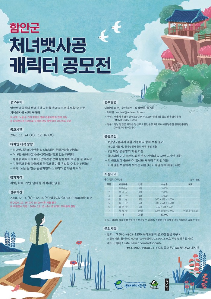 군 관계자는 “함안군 악양생태공원의 생태관광 자원과 처녀뱃사공 이미지를 친숙하게 전달하고, 독특한 스토리를 시각적으로 보여줄 수 있는 매력적인 캐릭터를 발굴하고자 이번 공모전을 개최했다”며, “지역민을 포함해 관심 있는 분들의 많은 참여를 부탁드린 다”고 전했다.