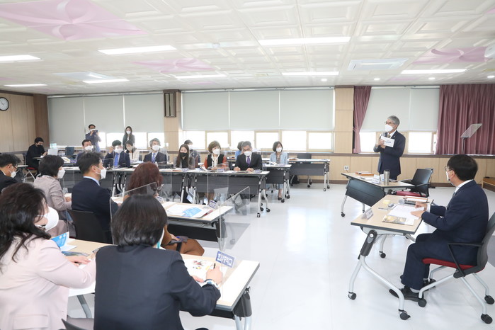 ‘단위학교 교무행정팀의 운영상 어려운 점과 해결방안’에서는 소규모학교가 많은 지역 특성상 실질적인 교무행정팀 운영의 어려운 점을 토로하기도 하였다. 이에 정상율 교육장은 학교통합지원센터에서 펼치고 있는 다양한 지원정책을 안내했다.
