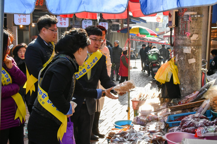[시민일보 = 이대우 기자] 서울 강남구의회(의장 이관수)가 최근 민족 고유의 명절인 설을 앞두고 전통시장 이용 활성화 캠페인에 나서 따뜻하고 풍성한 명절을 기원했다.