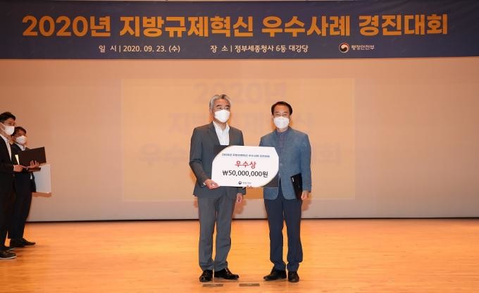 부산시(시장 권한대행 변성완)는 지난 23일 세종정부청사 대강당에서 개최된 행정안전부 주관 「2020년 지방규제혁신 우수사례 경진대회」에서 우수상과 장려상을 받았다고 밝혔다.