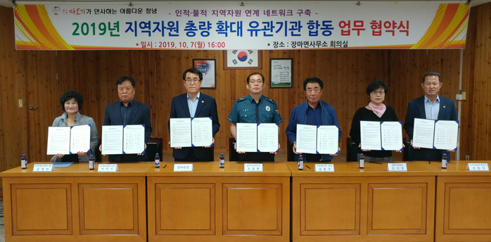 창녕군 장마면(면장 이성부) 등 7개 기관.단체는 7일 장마면사무소에서 2019년 지역자원 총량 확대 유관기관 합동 업무 협약식을 가졌다고 밝혔다.