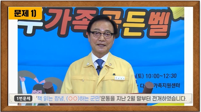 이번 행사에는 군에 거주하는 다양한 가족 43개팀, 176명이 참여했고, 참여 가족들은 집에서 사전에 배부된 가족 티셔츠를 입고 온라인 실시간으로 골든벨에 도전했다.