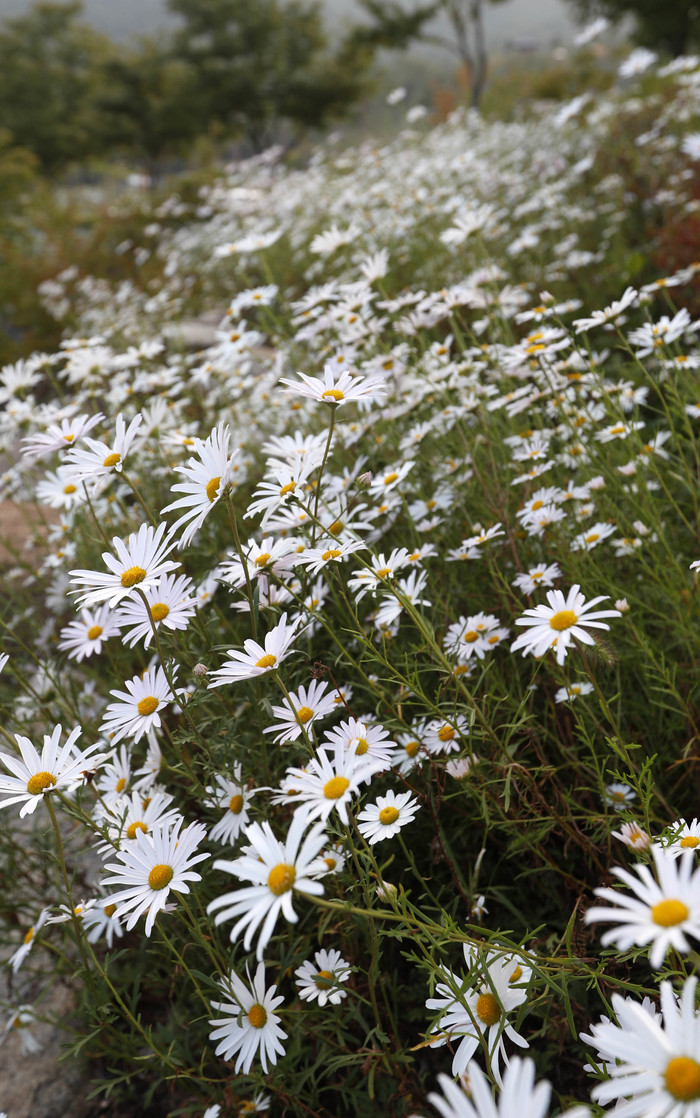 제18호 태풍 ‘미탁’이 물러간 지난3일 오전 가을을 맞은 산청 동의보감촌에 구절초가 만개했다. 구절초는 구일초(九日草), 선모초(仙母草), 들국화 등으로 불리며 부인병과 위장병에 효능이 있다. 동의보감촌에는 매년 가을이면 국내 최대 규모의 구절초 군락이 꽃을 피운다. 산청군에서는 오는 9일까지 산청IC 앞 축제광장과 동의보감촌 일원에서 제19회 산청한방약초축제가 열리고 있다.