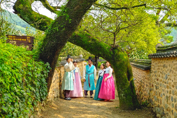 사극 드라마의 한 장면 속으로 들어온 듯한 착각을 불러일으키는 산청군 단성면 남사예담촌에서 전통 한복을 입고 인증샷을 찍을 수 있게 됐다.