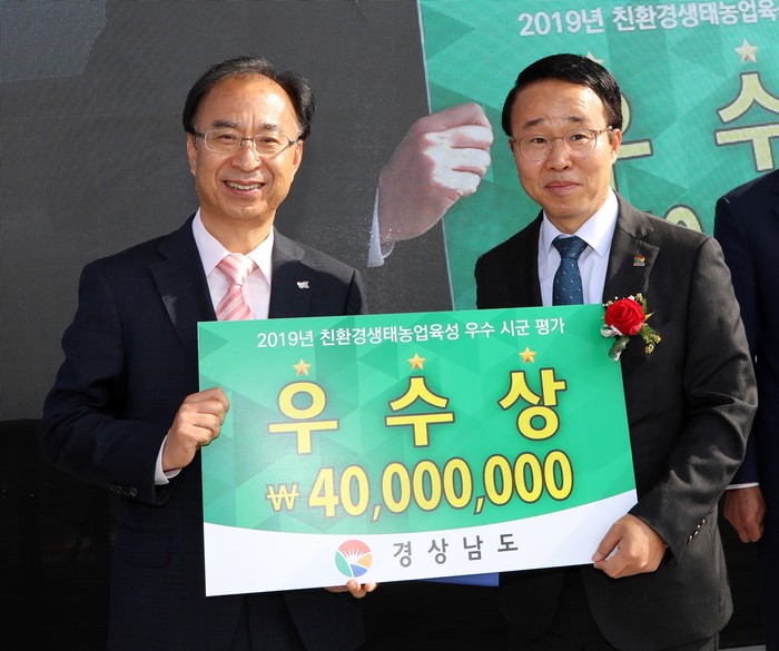 군은 친환경농업육성을 위하여 무농약 쌀·농산물 생산단지 지원사업, 친환경인증비 지원사업 등을 추진해왔다. 이로 인해 친환경농산물 생산 증가를 위하여 노력한 공을 인정받아 친환경생태농업육성 우수시군 평가에서 우수기관으로 선정되었고 상사업비 4,000만원을 획득했다. 획득한 상사업비는 친환경농업인들과의 협의를 통하여 2020년사업으로 집행될 예정이다.