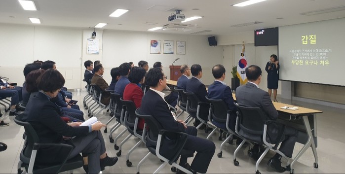 이번 워크숍은 우리사이연구소 이기화 소장을 초청해 ‘사상체질 심리를 활용한 공감힐링’이란 주제로 ‘청렴’과 엮어서 재미있게 진행됐다. 각자 개인별 체질특성을 이해해 공감능력과 청렴의지를 높이는 법을 컨설팅하는 등 딱딱한 강의식 교육이 아닌 소통하는 교육으로 진행돼 호응을 얻었다.
