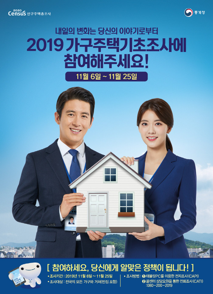 ‘2019 가구주택기초조사’에서는 전국 규모 조사 최초로 태블릿PC를 활용한 조사와 전화조사를 병행하며, 지리정도시스템(GIS) 기반의 전자지도를 제공해 조사대상 가구의 중복과 누락을 방지한다.