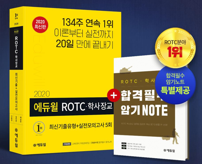 에듀윌에 따르면 수험서는 2020년 ROTC ·학사장교 필기시험 대비를 위해 ROTC ·학사장교에 최적화된 전문가 집필진이 2019년 최신 기출 유형을 분석했다. 최신 출제 경향을 반영한 핵심 이론과 문제로 수험생들이 보다 효율적으로 학습할 수 있도록 구성했다.