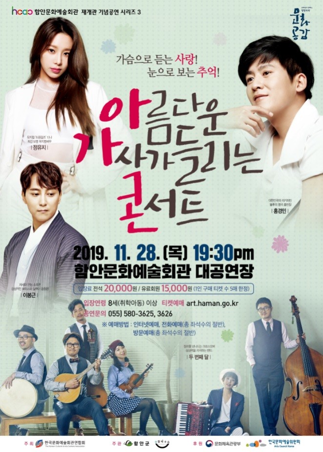 오는 28일 오후 7시 30분 함안문화예술회관 대공연장에서 함안문화예술회관 재개관 기념공연 시리즈의 세 번째로 ‘아름다운 가사가 들리는 콘서트’ 공연이 펼쳐진다.