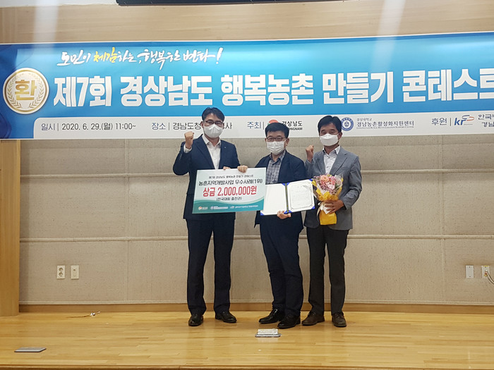 군은 최근 경남 서부청사에서 진행된 ‘제7회 경남도 행복농촌만들기 콘테스트’에서 농촌지역개발사업 우수사례 부문 1위인 우수상을 수상했다고 2일 밝혔다.