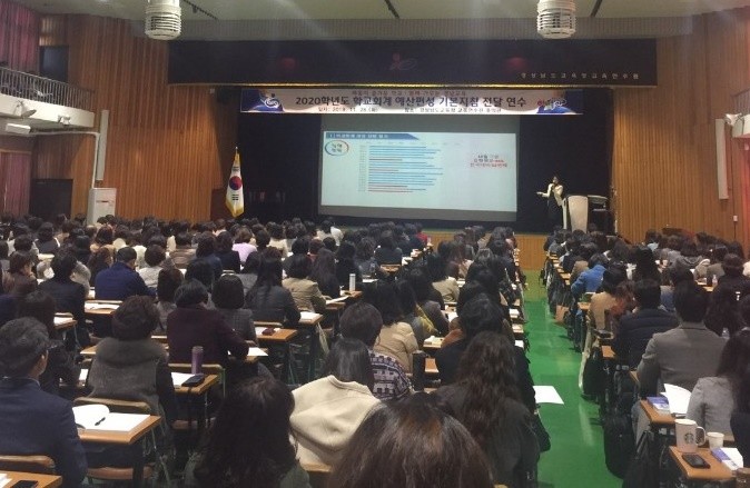 경상남도교육청(교육감 박종훈)은 지난 26일 경남교육청 교육연수원 홍익관에서 공립 유·초·중·고·특수학교, 각종학교 행정실장 등 400여 명을 대상으로 2020학년도 학교회계 예산편성 기본지침 연수를 실시했다. 27일에는 경남교육청 특수교육원 대강당에서 행정실장 400여 명을 대상으로 같은 연수를 실시한다.