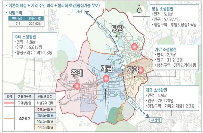 부산시는 부산진구와 사상구를 주례·개금·가야·당감동 등 4개 소생활권으로 구분하고 생활권계획을 수립하는 시범사업을 추진해왔다. 지난 2019년 8월, 용역에 착수하여 지역주민들로 구성된 시민참여단(97명) 워크숍을 진행하고, 설문조사와 전문가 TF팀 운영 등을 통해 시범구역 생활권계획(안)을 확정했다.