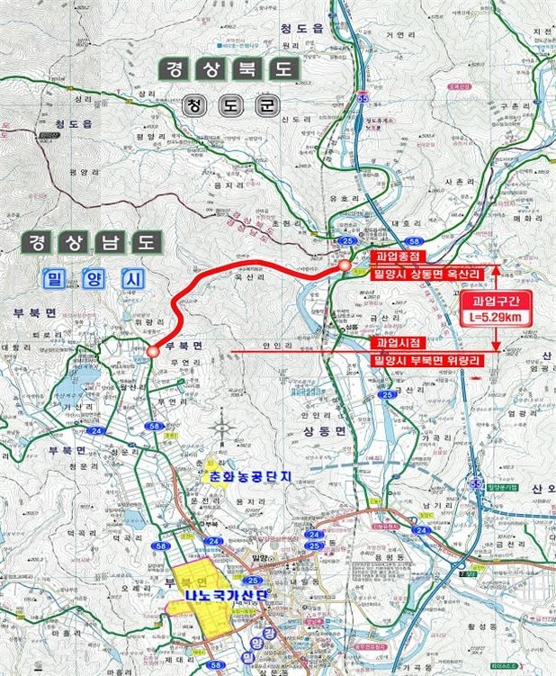 시 관계자는 “본 사업이 제5차 국도ㆍ국지도 5개년 건설계획에 반영될 수 있도록 계획단계부터 지금까지 모든 행정력을 동원하여 노력한 결과 예비타당성조사를 통과할 수 있었다”며, “경북 청도와 밀양을 연결하는 간선도로망 구축으로 지역균형발전에도 크게 기여할 것으로 기대된다”고 전했다.