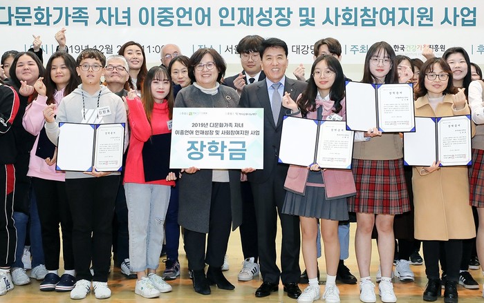 전달된 장학금은 한국건강가정진흥원이 운영하는 ‘다문화가족 이중언어 인재 DB'에 등재된 중고등학생 및 대학생을 대상으로 전문심사위원단의 심사를 거쳐 선발된 장학생 30명에게 총 5000만원이 수여된다.