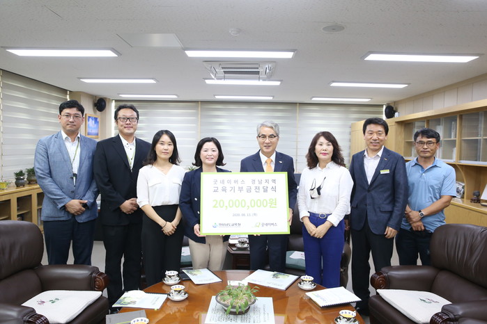 국제구호개발 비정부기구인 굿네이버스가 희망 나눔 모금액 2천만 원을 경상남도교육청에 기탁했다. 모금액은 13일 오후 굿네이버스 권민정 부산울산경남본부장이 경남교육청을 방문해 박종훈 교육감에게 전달했다.