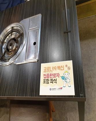 음식점에서는 매장 내 5인 이상 단체가 방문하는 경우, 백신 접종 완료 여부를 확인한 후 접종 완료자 테이블로 안내하거나 접종 완료자 포함이라는 안내 표지를 테이블에 놓아둠으로써 접종 완료자가 포함되었음을 알릴 수 있다.