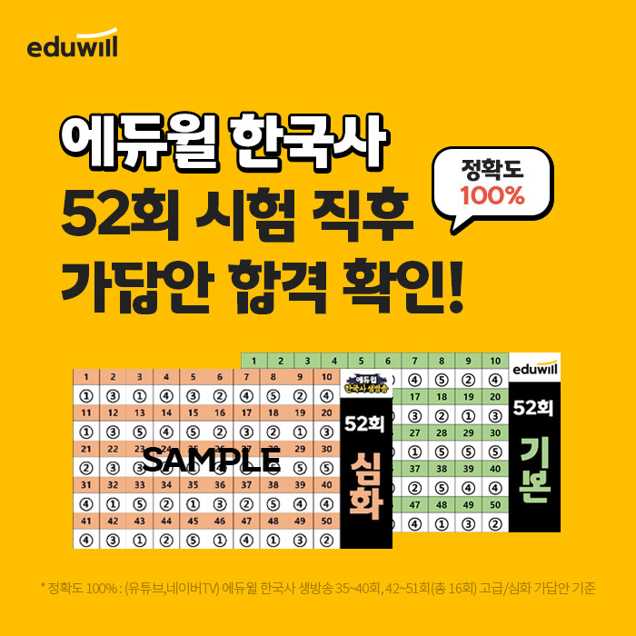 [시민일보 = 여영준 기자] 종합교육기업 에듀윌(대표 박명규)이 유튜브 에듀윌 공식 채널에서 진행되는 ‘에듀윌 한국사 생방송’을 통해 제52회 한국사능력검정시험 가답안을 공개한다.