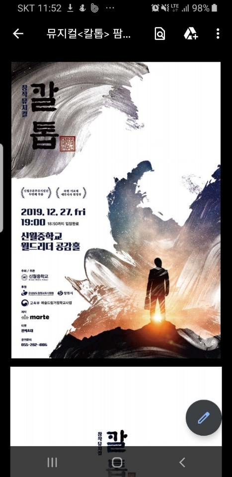 평소 문화예술을 통한 행복공감교육을 강조해온 신월중학교는 ‘우리이기에 내가 있다’라는 의미인 우분투 사상을 바탕으로 공동체의식 함양과 향토사랑 정신 확산을 위해 신월우분투뮤지컬단을 창단하였다. 현재 20여 명의 단원들이 두 번째 창작뮤지컬인 ‘칼톱’의 성공적 공연을 위해 구슬땀을 흘리고 있다.