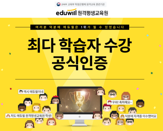 한편, 에듀윌은 세 번의 대통령상 수상을 비롯, 정부기관상 12관왕을 달성한 종합교육기업이다. 한국리서치 공무원 선호도, 인지도 조사 결과 1위에 올랐으며, KRI 한국기록원에 공인중개사 최다 합격자 배출 기록을 세 번 공식 인증받았다.