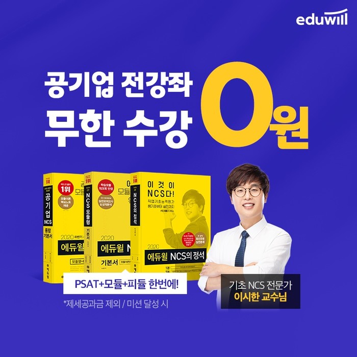 수강신청 시 에듀윌의 취업스펙 진단 평가를 받을 수 있고, △실물 족집게 봉투모의고사 △이시한 교수 기초 NCS 강의 △ 공기업 기업분석 자료 5종 △ 직무별 자소서&면접 / 최신 시사상식 강의 △가산자격증 강의 등의 혜택을 모두 이용할 수 있다.