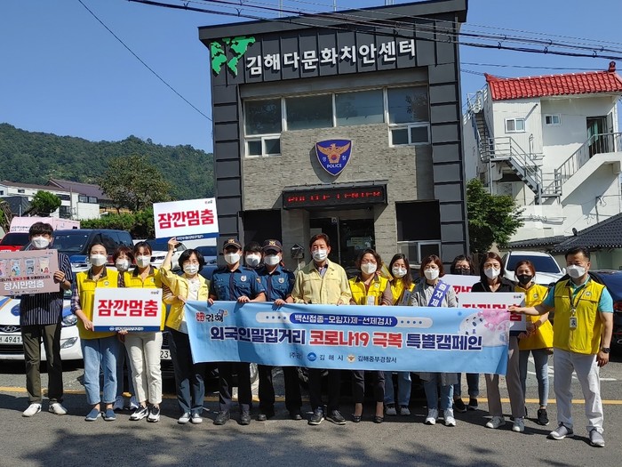 김해시(시장 허성곤)는 휴일인 지난 3일 오후 외국인밀집지역인 동상·회현·부원동 일대에서 김해중부경찰서와 시청 시민복지국 전 직원들이 참여해 마스크와 코로나 백신접종 다국어 번역 홍보물을 전달하며 방역수칙 준수와 백신접종 독려 캠페인을 실시했다고 5일 밝혔다.