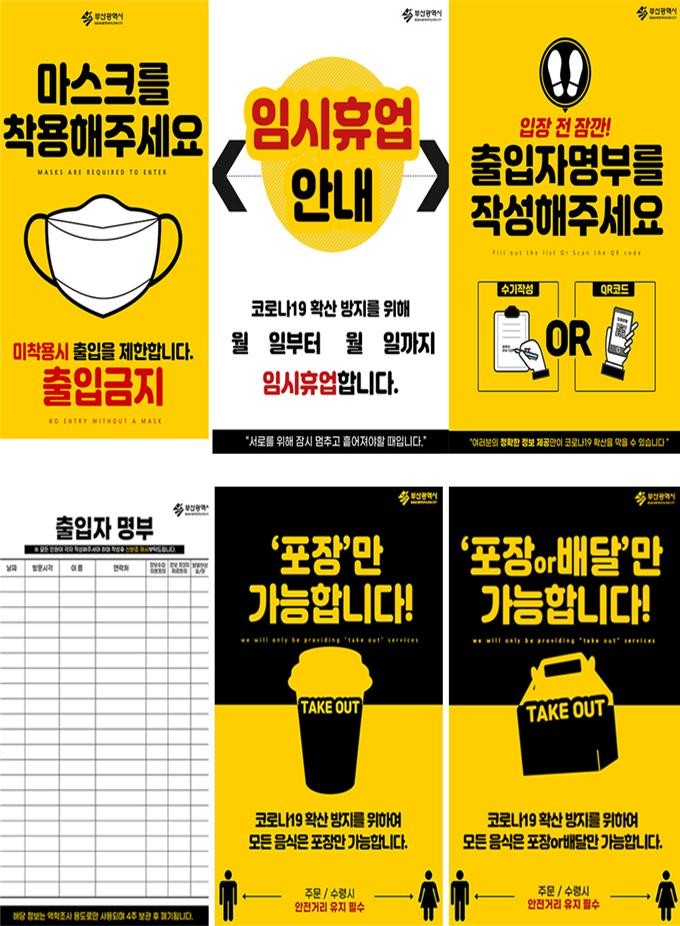 부산시는 코로나19가 장기화하고, 사회적 거리두기도 연장되면서 각종 안내문이 필요한 소상공인과 자영업자들이 별도로 안내문을 제작하는 번거로움을 해소하고, 이들에게 편의를 제공하기 위해 이번 안내문을 제작했다고 밝혔다.