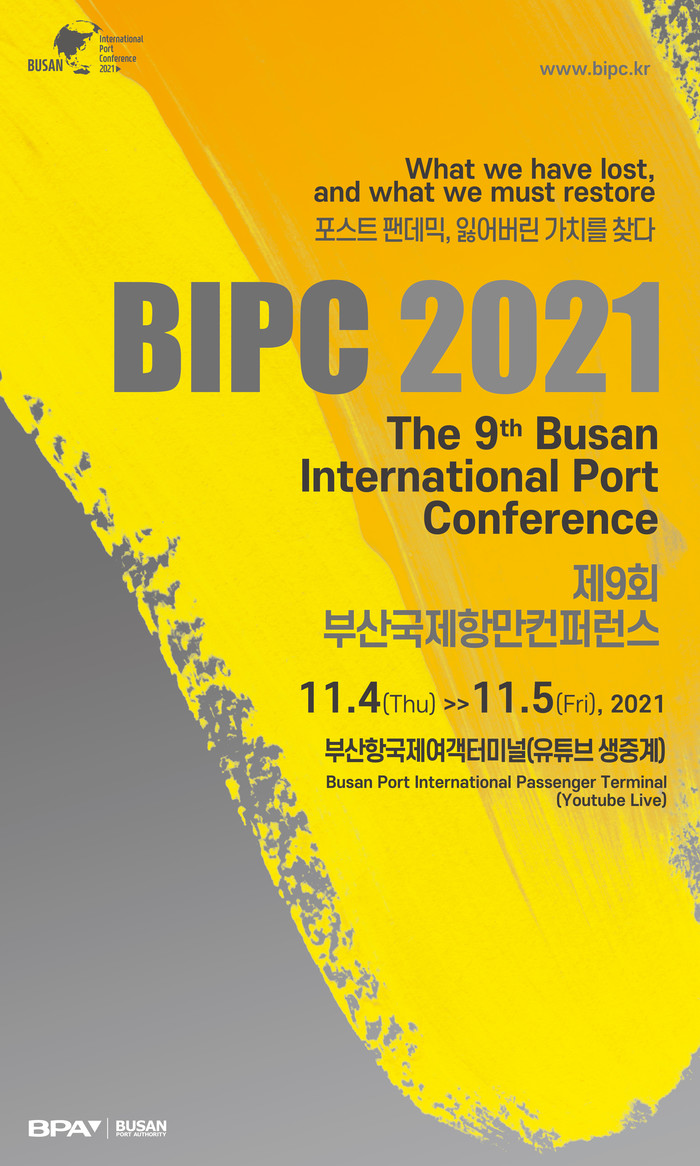 부산항만공사(BPA, 사장 강준석)는 11월 4일부터 5일까지 「제9회 부산국제항만콘퍼런스(Busan International Port Conference/ BIPC)」를 개최한다고 밝혔다. 참석 인원 100인 이하로 제한된 오프라인 콘퍼런스와 함께 실시간 유튜브 중계를 병행하는 하이브리드 방식으로 진행한다.