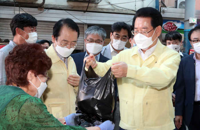 김 지사는 “코로나19 장기화로 모두가 힘든 시간을 보내고 있다”며 “도민들께서 경기 침체로 힘든 전통시장에서 추석명절 성수품 등을 구매해 지역경제 살리기에 동참하길 바란다”고 말했다.