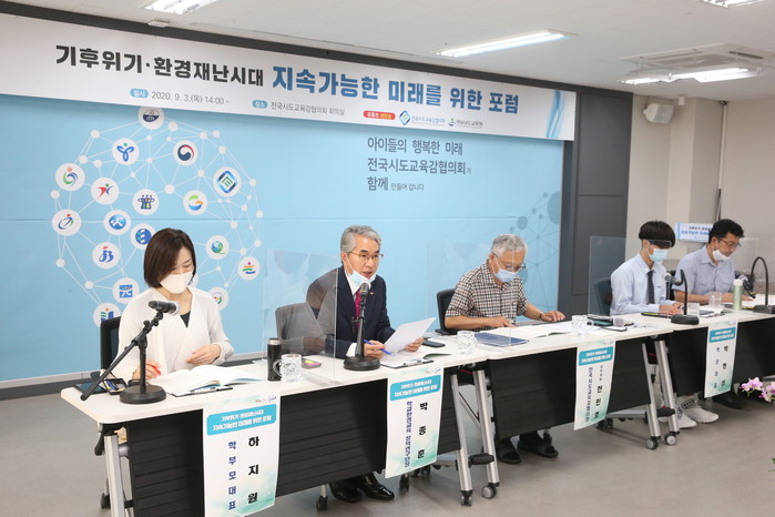 박종훈 교육감은 “기후 위기로 미래가 없는데, 미래를 위한 공부를 해야 하나라는 학생의 말이 큰 아픔으로 다가왔다. 미래세대의 교육을 책임지고 있는 교육감들이 아이들의 소중한 미래를 위해 적극 나서야 한다”며 미래교육으로서의 학교교육의 대전환을 강조했다.