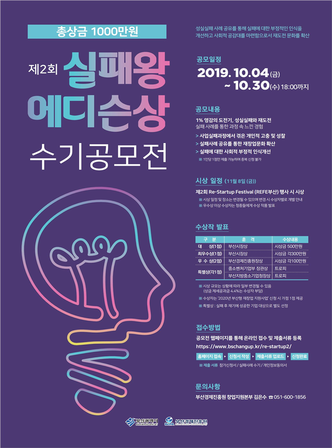 성실한 실패를 응원하기 위해 지난해 처음 개최했으며, 올해도 부산시장상, 중소벤처기업부 장관상 등 총 6점, 시상금 1,000만 원 상당의 규모로 공모전을 진행한다.
