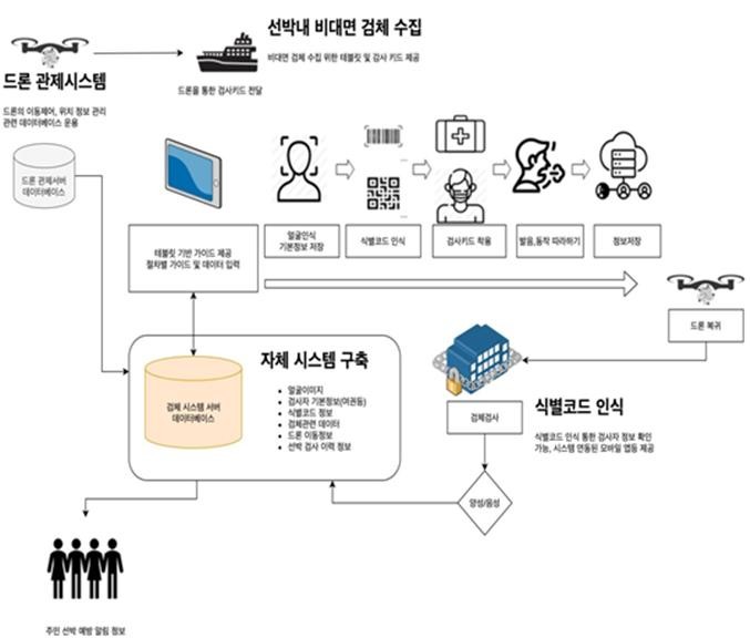 ‘포트 스루 플랫폼 개발’ 사업은 ▲선박 정박 前 해양환경 맞춤형 드론을 활용한 진단 키트 배송·회수 ▲일반인이 마스크 패치에 호흡, 기침 등으로 타액을 포집하는 검체 수집 ▲승선원의 검체 데이터 식별을 위한 안면인식 바코드 출력 시스템 ▲항만 근무자와 지역주민을 위한 알림 시스템 등의 개발 및 적용하는 것으로 모든 과정이 비대면으로 진행될 계획이다.