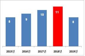 | ▲ 01‘15~’19년 사찰 화재발생(건) |