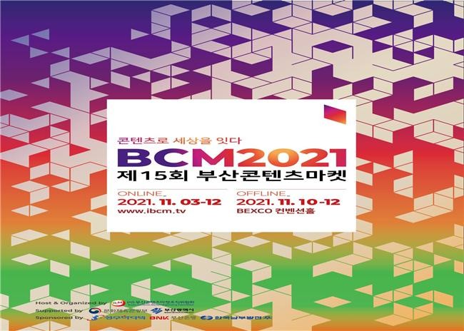 부산시(시장 박형준)는 오늘(3일)부터 12일까지 10일간, 아시아 최고의 콘텐츠마켓을 목표로 ‘제15회 부산콘텐츠마켓(BCM2021)’을 개최한다고 밝혔다.