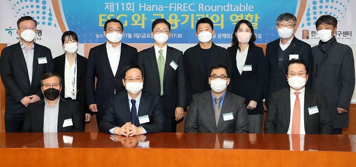 [시민일보 = 여영준 기자] 하나은행 소속 하나금융경영연구소는 지난 5일 오후 한국금융연구원 8층 대회의실에서 (사)한국금융연구센터(이사장 임희택)와 공동으로 'ESG와 금융기관의 역할'이라는 주제로 제11회 라운드테이블을 개최했다.