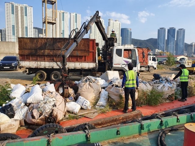 [부산=최성일 기자] 부산항만공사(BPA, 사장 남기찬)가 지난 4일부터 부산항 4물양장(부산시 동구 좌천동 소재) 내 방치된 폐기물을 처리하는 부두 환경 정화를 진행하고 있다.
