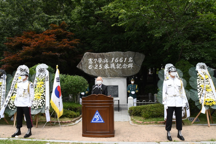 부산지방보훈청(청장 권율정)은 22일 오전 11시 어린이대공원 내 “헌7학병 6·25참전 기념비”에서 부산지방보훈청장, 부산시 정무특보, 육군제53사단 부사단장, 헌7학병동지회원, 시민 등 100여 명이 참석한 가운데 “제71주년 헌7학병 6·25전쟁 참전기념 및 전몰영령 추모행사”를 가졌다고 밝혔다.