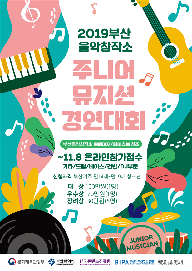 부산시(시장 오거돈)는 대중음악인을 꿈꾸는 부산지역 청소년을 대상으로 ‘2019 부산음악창작소 주니어 뮤지션 경연대회’를 개최한다고 밝혔다.