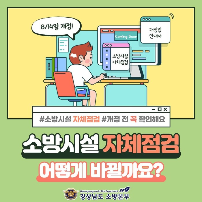 양산소방서(서장 김동권)는 '화재예방, 소방시설 설치·유지 및 안전관리에 관한 법률 시행규칙'의 소방시설 자체 점검 관련 개정 법령을 홍보한다고 밝혔다.