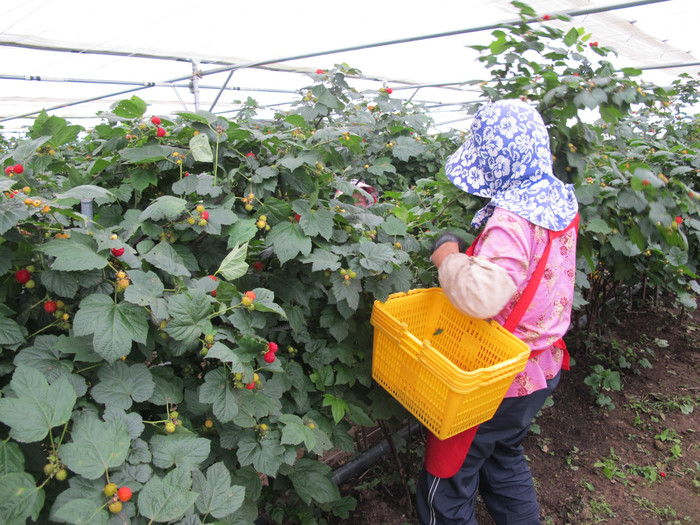 | ▲ 시설하우스 산딸기 수확 장면 사진 |