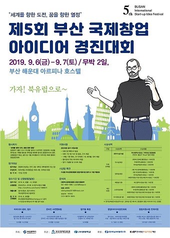 부산시(시장 오거돈)와 부산경제진흥원은 9월 6일부터 7일까지(무박2일) 해운대 아르피나에서 ‘제5회 부산 국제창업아이디어 경진대회(BUSAN International START-UP Idea Festival)’를 개최한다고 밝혔다. 당초 송상현광장에서 개최 예정이었으나 가을장마와 태풍예보로 장소를 실내로 옮겼다.